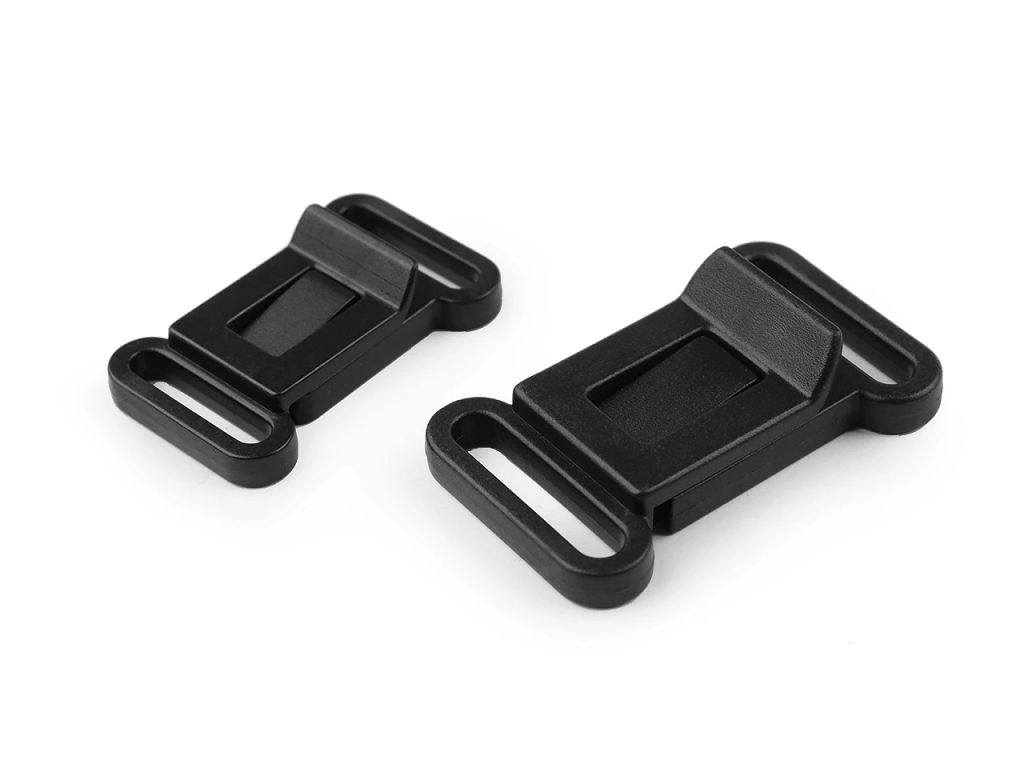 Plastová spona se skládá ze dvou částí. Využijete ji k výrobě batohů, kabelek, tašek apod. Je vhodná jako zapínání i k upevnění uch a popruhů.
