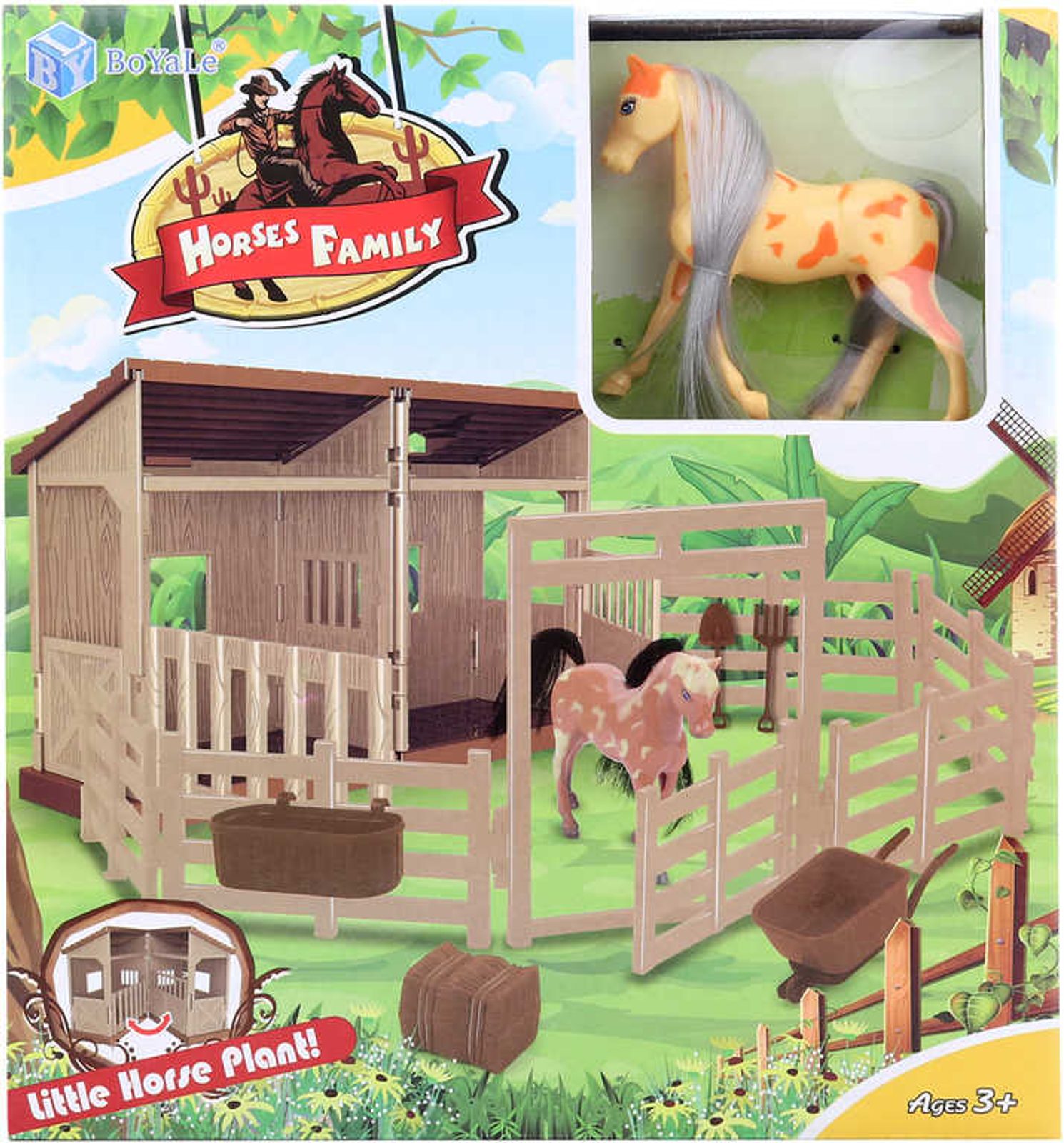 Skládací plastová stáj pro koně. Součástí balení je jeden koník.