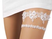 Dvojitý svatební podvazek - neboli set podvazků, je ozdobený romantickou krajkovou aplikací s květy. Oba podvazky jsou zkrášlené perlami. Zadní část podvazků pruží, na noze dobře drží. Můžete je nosit i samostatně.