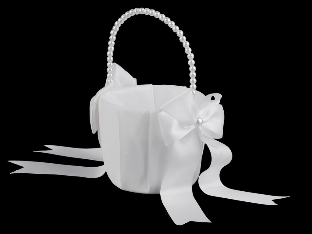 Svatební saténový košíček pro družičky, s perlami