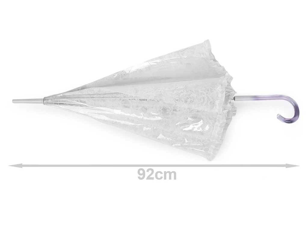 Je vyrobený z pevného materiálu, je hluboký, vystřelovací, má klasickou tyč zakončenou pevnou rukojetí, která přechází z bílé barvy do transparentní. Konstrukce deštníku je z kovového drátu a tvoří osm polí.