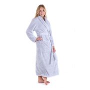Úžasný huňatý župan od české značky Vestis. Dlouhý župan ve světle šedé barvě. Župan pro ženy, ale i pro muže se šálovým límcem, zavazováním v pase a velkými kapsami.