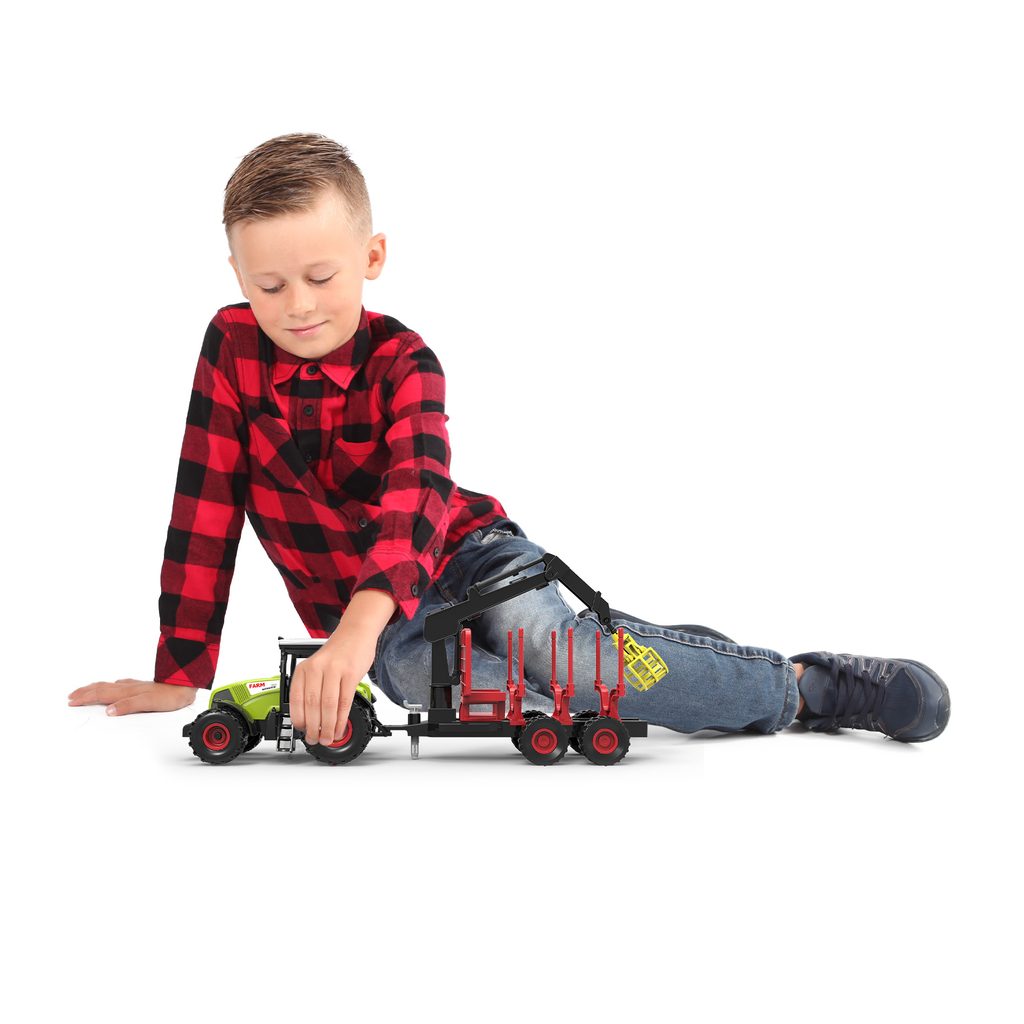 Tento traktor je skvělý pro rozvoj jemné motoriky (manipulace s chapadlem, nakládání / vykládání do vlečky), představivosti (hra na farmu, práce s nákladem), a také sluchových a zrakových vjemů díky zvukům a světlu.