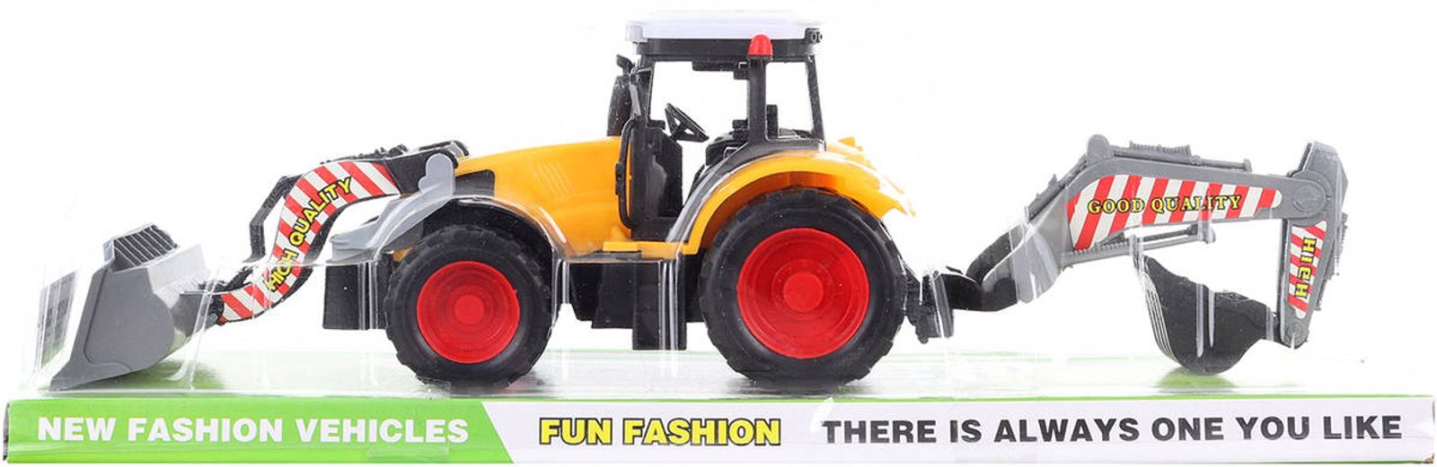 Traktor stavební pracovní stroj s nakladačem a rypadlem se 2 lžícemi