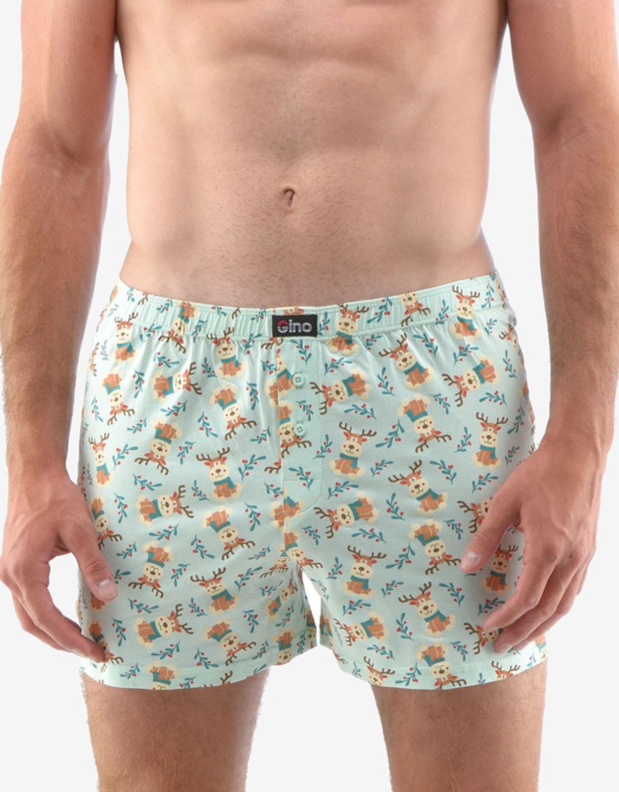 Volné trenky ze 100% bavlny jsou ideální volbou pro každého, kdo má rád klasický pohodlný střih volných trenek a přírodní materiály. Tento kousek má veselý celoplošný vzor a v pase nášivku s logem Gino. Dobře padnoucí pasová guma a rozparek na dva knoflíky jsou samozřejmostí. Tenhle moderní kousek prostě nesmí chybět žádnému milovníkovi Vánoc!.