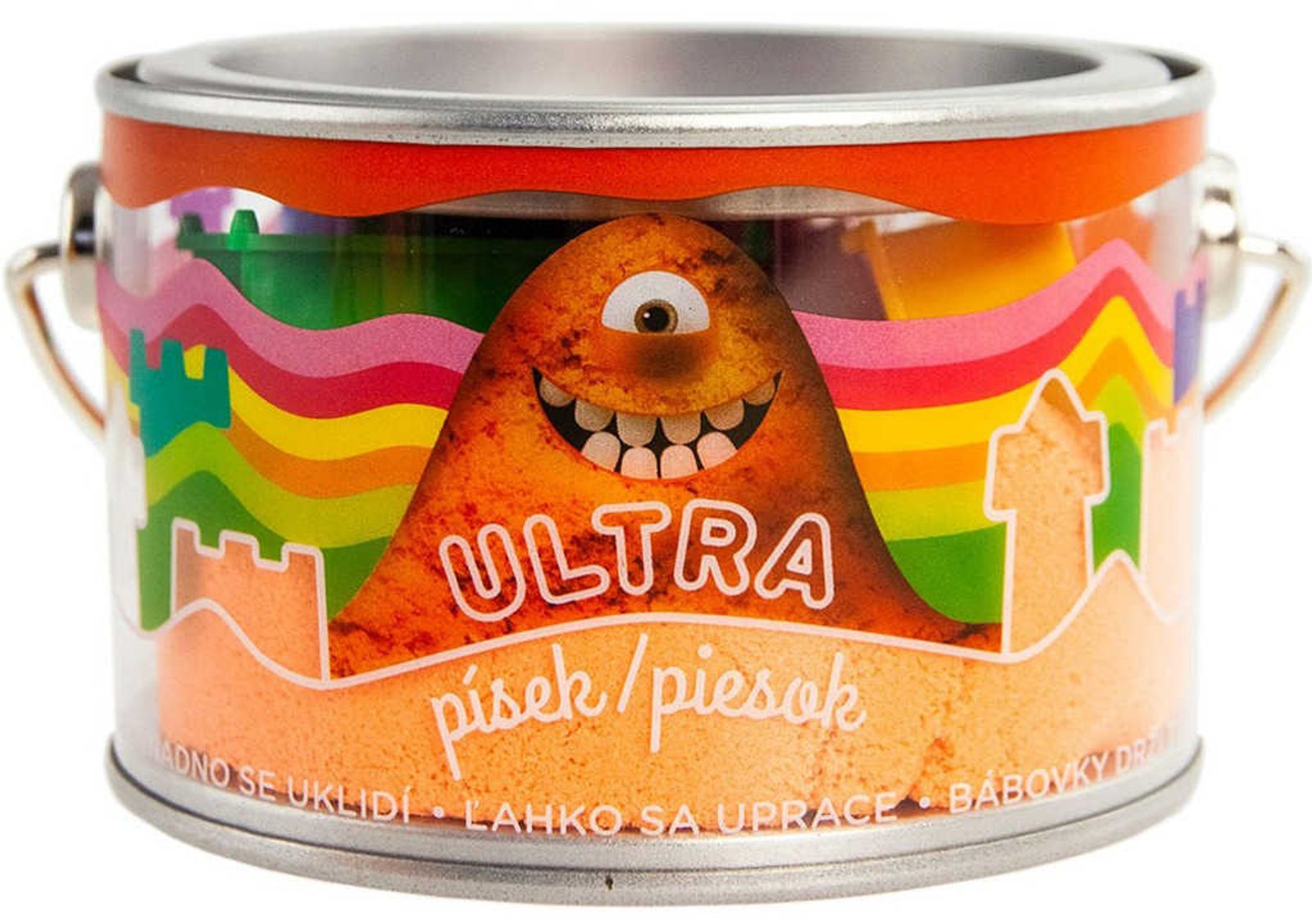 Ultra písek kinetický magický 200g oranžový set s formičkami v plechovce