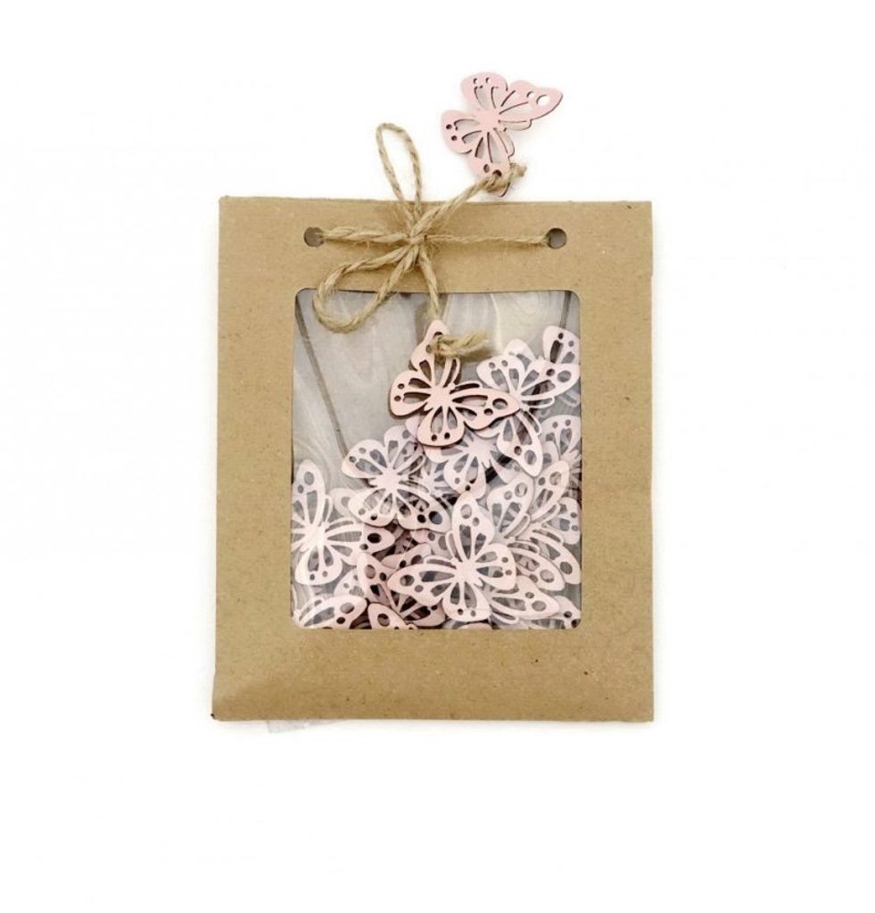 Dřevění motýlci 27 kusů růžová
