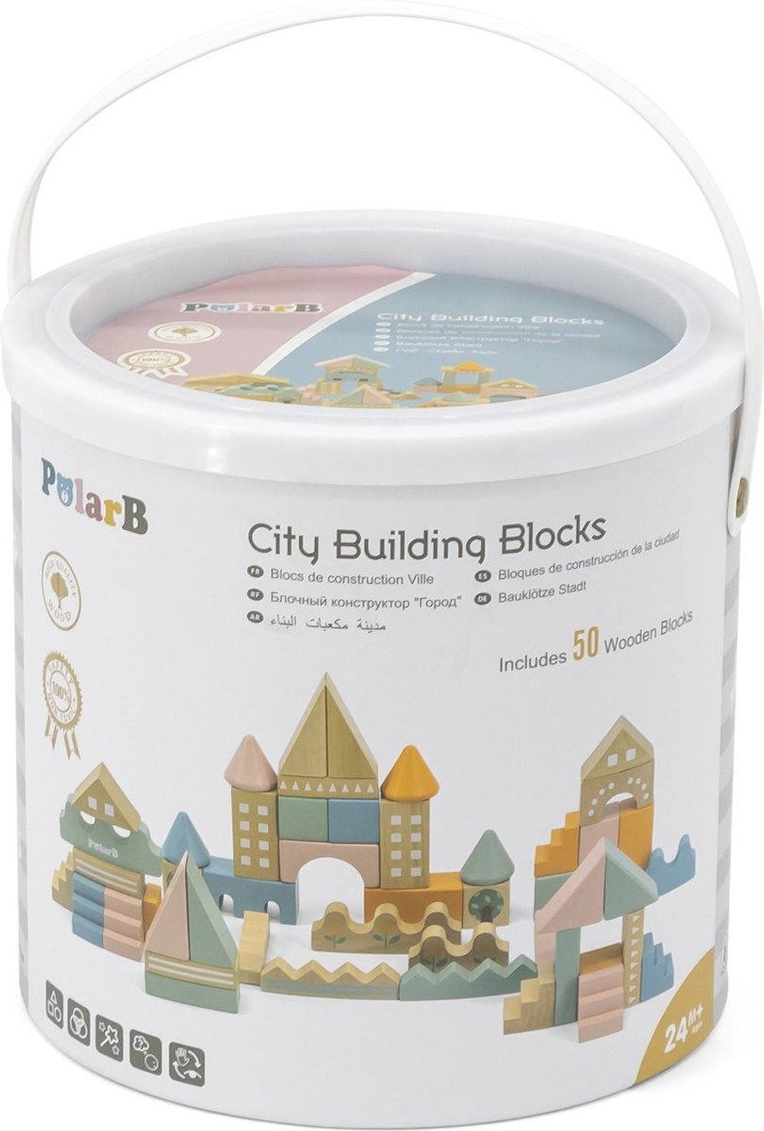 VIGA DŘEVO PolarB Stavebnice baby 50 dílků v kyblíku *DŘEVĚNÉ HRAČKY*