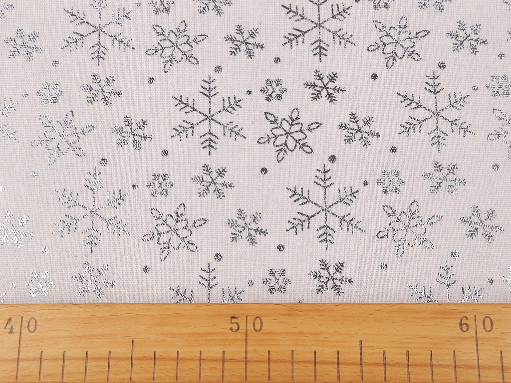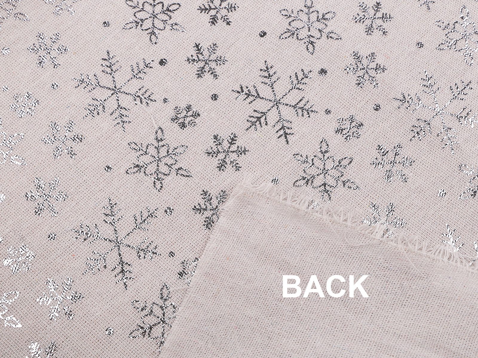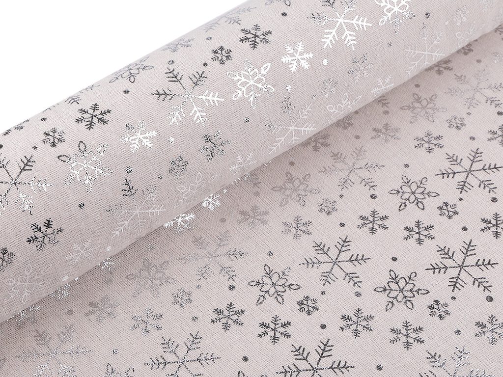 Vánoční bavlněná - imitace lnu sněhové vločky metalické METRÁŽ