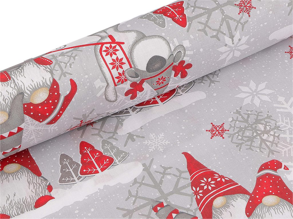 Vánoční bavlněná látka / plátno skřítek METRÁŽ
