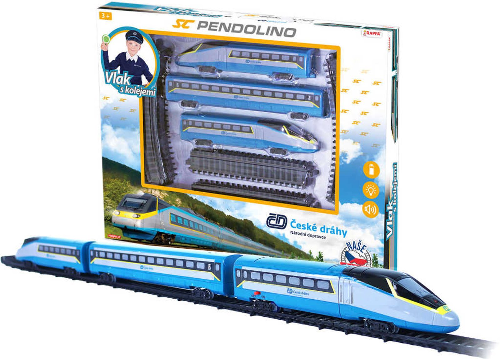 Vlak ČD SC České Dráhy Super City Pendolino s kolejemi na baterie Světlo Zvuk