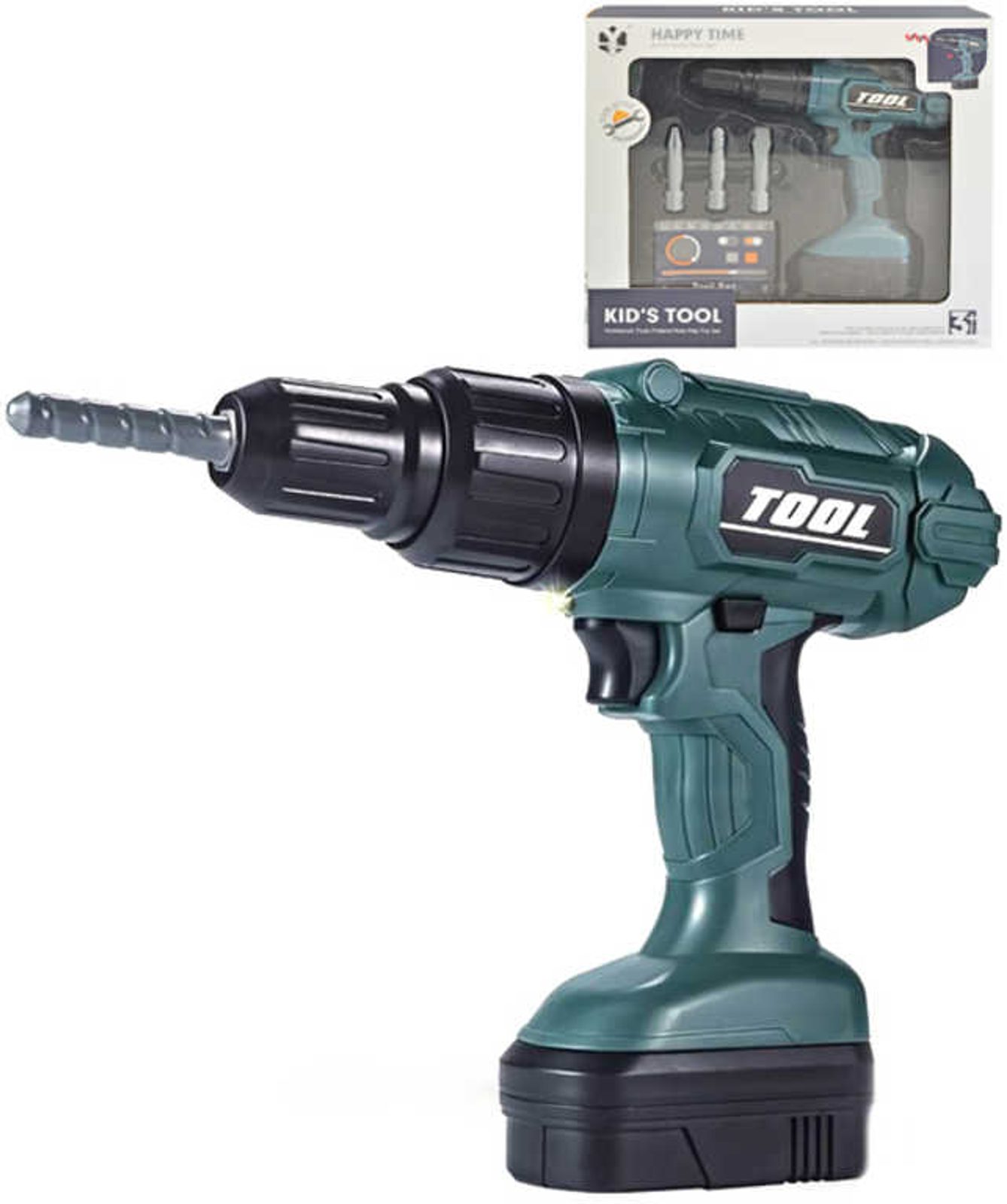 Vrtačka aku šroubovák 19cm na baterie set se 3 nástavci plast Světlo Zvuk