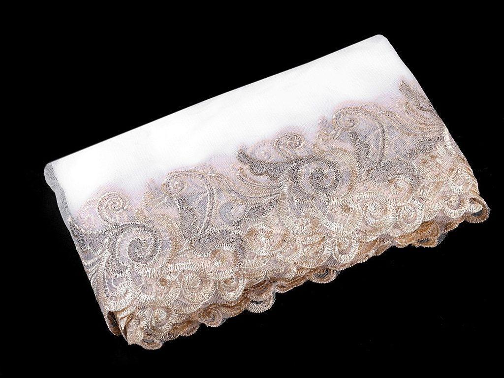 Vyšívaná krajka na monofilu s lurexem šíře 23 cm METRÁŽ