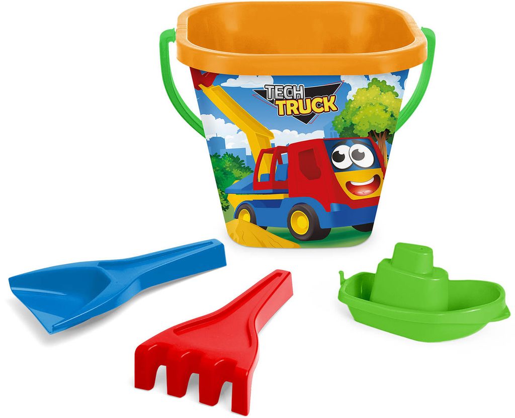 (kyblík 2,0 L, lopatka, hrábě, sítko a konvička). Baleno v síťce.
