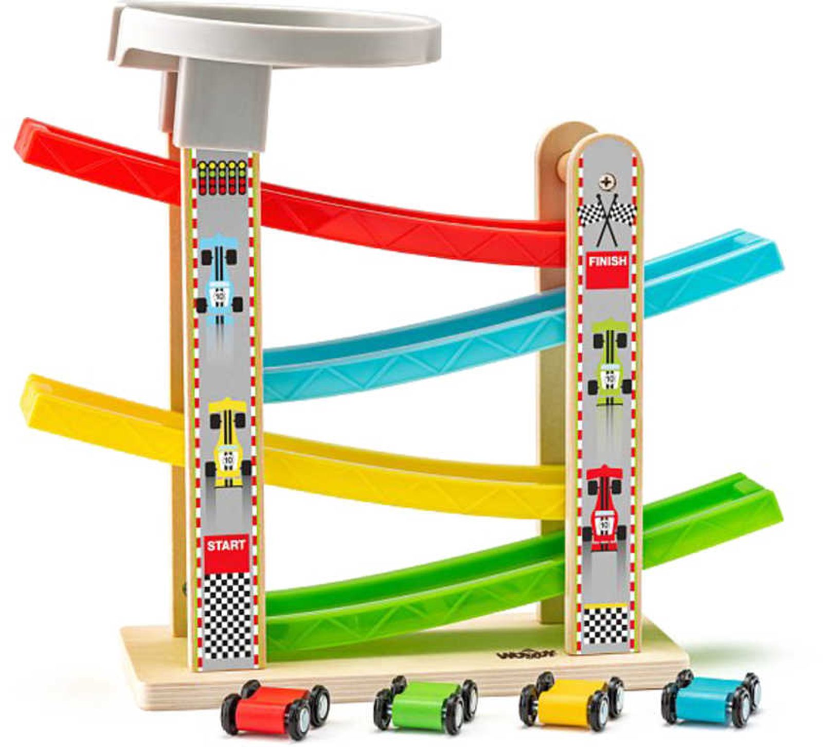 WOODY DŘEVO Set dráha se 4 překlápěcími autíčky *DŘEVĚNÉ HRAČKY*
