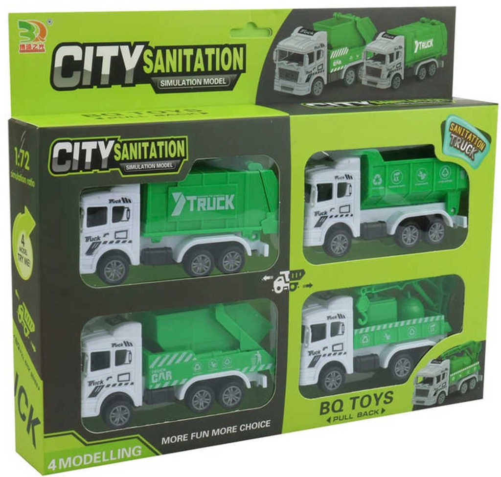 WOODY DŘEVO Užitkové vozy set 4 autíčka se 2 figurkami doplněk k vláčkodráze