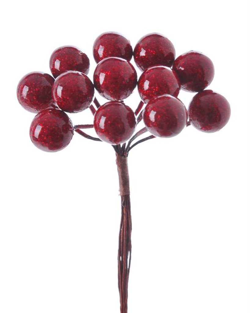 dekorace bobule lak glitter - červená 12 kusů